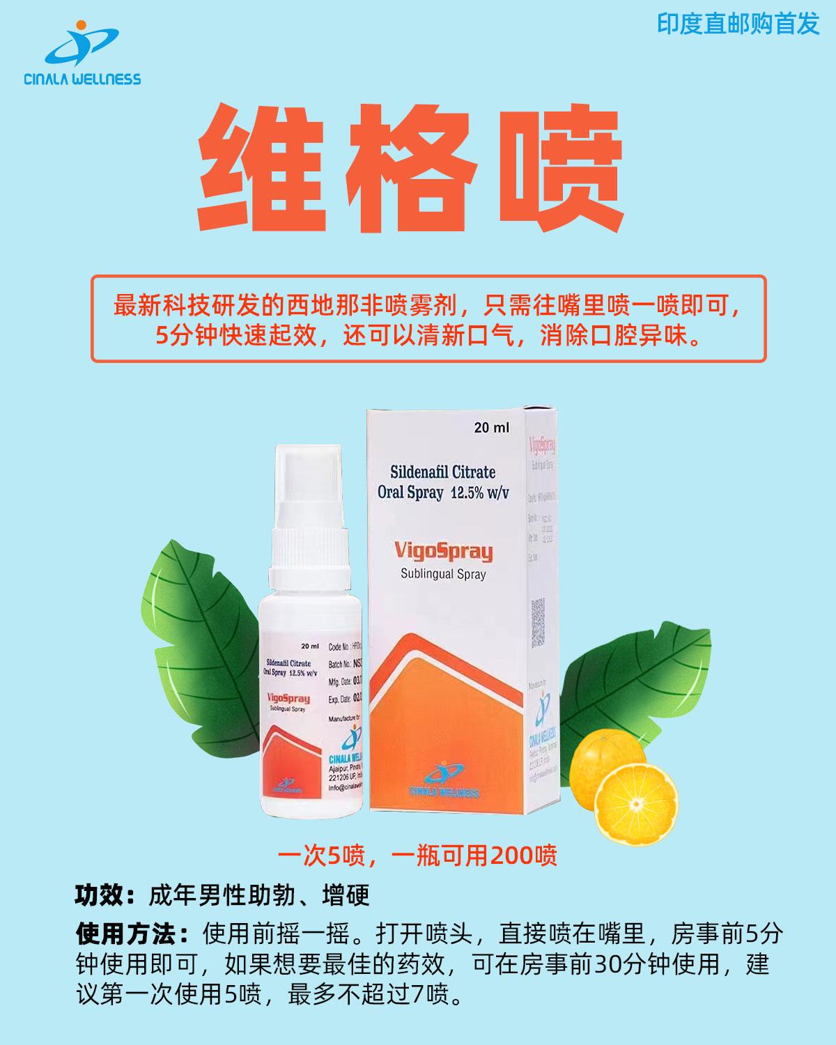 维格喷(伟哥喷)喷雾式万艾可 VigoSpray Sublingual Spray 20ml