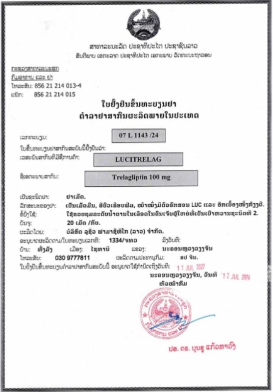 琥珀酸曲格列汀片 LuciTrelag ( Trelagliptin 100mg ) LUCIUS 曲格列汀100mg*20片/盒